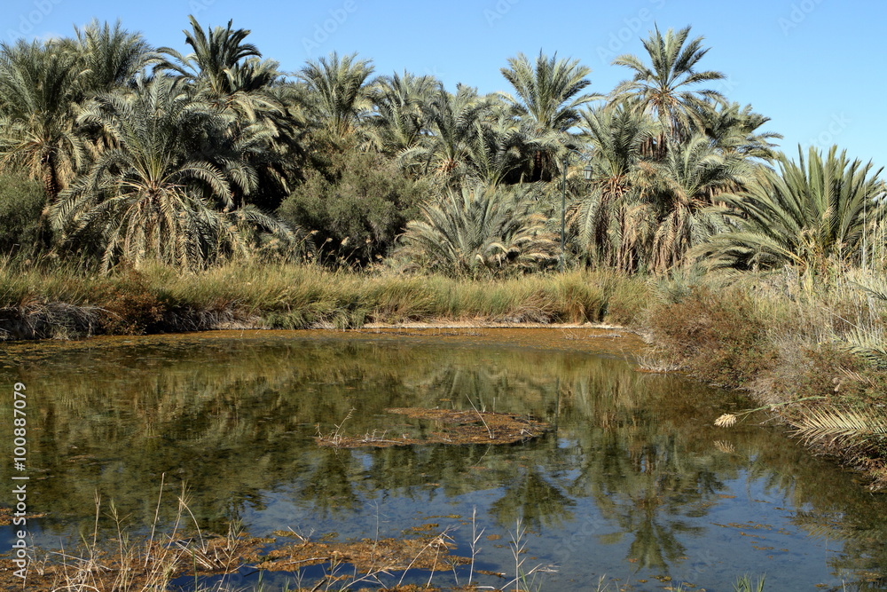 Green Oasis With Pond In Sahara Desert Stock Photo Alamy